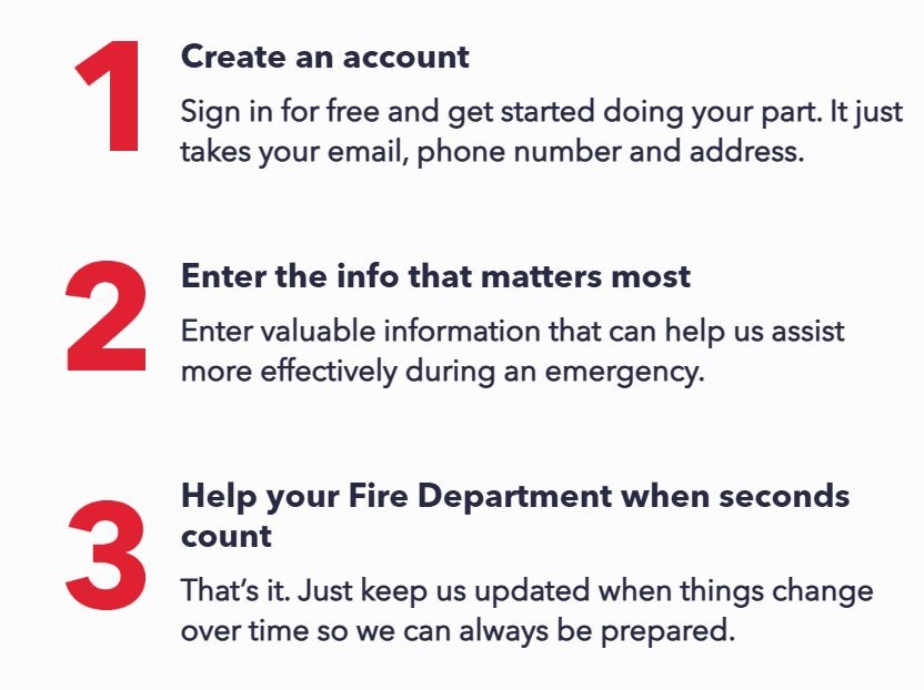 Community Connect is a free, secure, and easy-to-use platform that allows residents to share essential information about their households with first responders. This information, provided voluntarily, equips our firefighters with the details they need to respond more effectively in emergencies, ensuring you, your family, and your property are safeguarded.